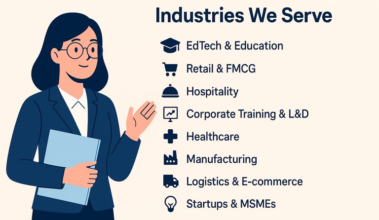 At InspireX Learning & Recruitment, we support a wide spectrum of industries with smart hiring, skill development, and workforce transformation. Our solutions are tailored to the unique talent needs, operational challenges, and cultural environments of each sector.